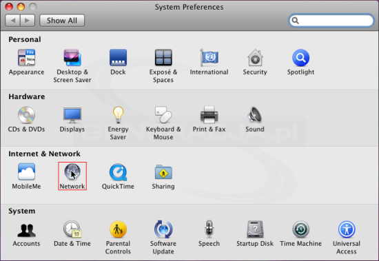 STEP 2: W oknie System Preferences klikamy w ikonkę Network: