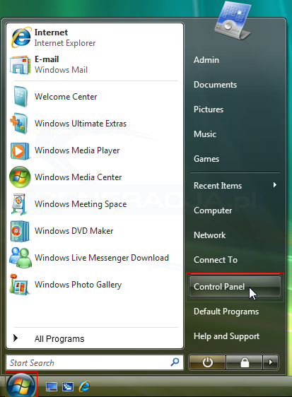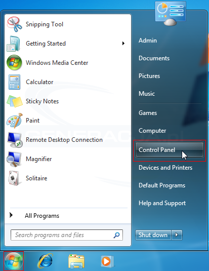 STEP 1.1: Na pasku zadań klikamy na ikonkę Start i z menu wybieramy Panel sterowania: