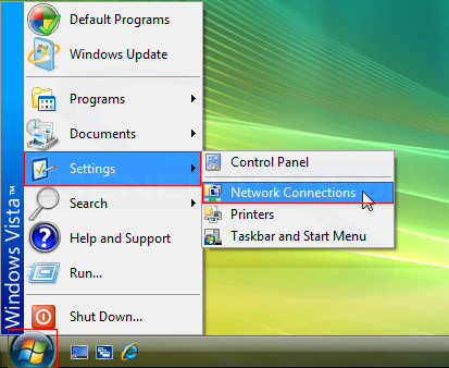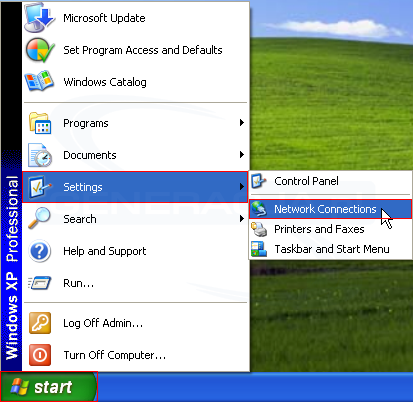 STEP 1.2: [KLASYCZNE MENU START] Na pasku zadań klikamy na ikonkę Start i z menu wybieramy Ustawienia, a następnie Połączenia sieciowe. Po wykonaniu tego kroku przechodzimy odrazu do punktu nr 3: