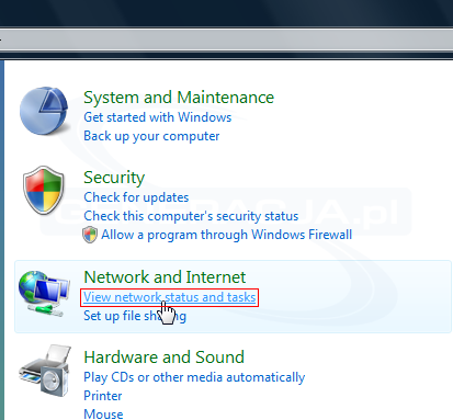 STEP 2.1: W Panelu sterowania z kategorii Sieć i Internet wybieramy Wyświetl stan sieci i zadania: