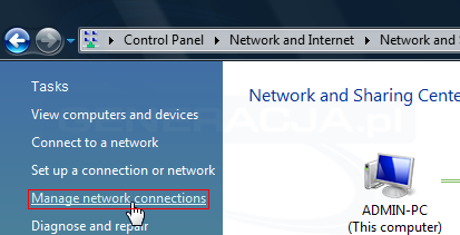 STEP 3: W Centrum sieci i udostępniania z lewego menu wybieramy Zarządzaj połączeniami sieciowymi: