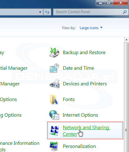 STEP 2.2: [WIDOK IKON] W Panelu sterowania wybieramy Centrum sieci i udostępniania: