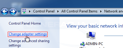 STEP 3: W Centrum sieci i udostępniania z lewego menu wybieramy Zmień ustawienia karty sieciowej: