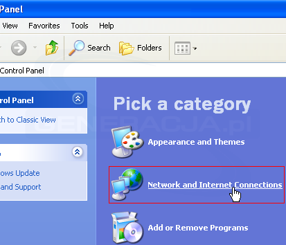STEP 2.1.1: [WIDOK KATEGORII] W Panelu sterowania wybieramy kategorię Połączenia sieciowe i internetowe: