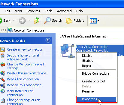 STEP 3: W oknie Połączenia sieciowe klikamy prawym przyciskiem myszki na wybranym Połączeniu lokalnym i z menu wybieramy Właściwości:
