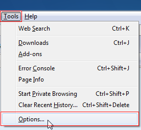 STEP 1: Z górnego menu przeglądarki wybieramy odpowiednio Tools i Options...: