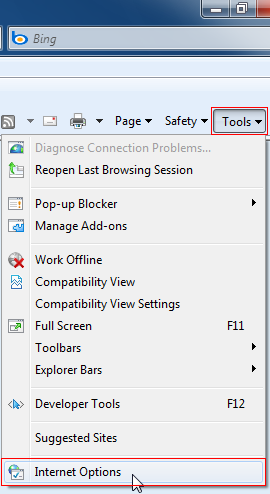 STEP 1: Z górnego menu przeglądarki wybieramy odpowiednio Tools i Internet Options: