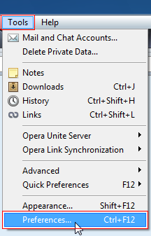 STEP 1: Z górnego menu przeglądarki wybieramy odpowiednio Tools i Preferences...: