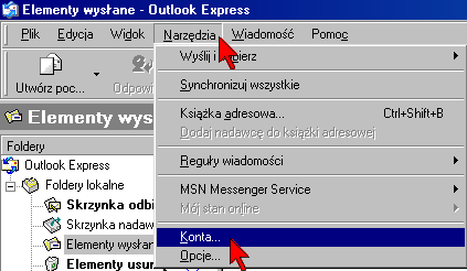 KROK 1: Wybierz z menu głównego programu Outlook Express opcję "NARZĘDZIA"