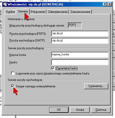Aby móc wysyłać pocztę należy dokonać drobnej modyfikacji w konfiguracji klientów poczty elektronicznej. Zmiany opisujemy dokładnie dla programu Microsoft Outlook Express 6.0 (w innych programach pocztowych opcje nazywają się podobnie).
