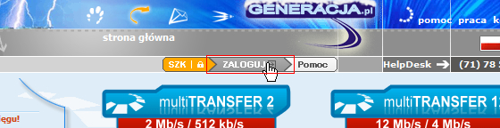 KROK 1: Z górnego menu klikamy na przycisk ZALOGUJ lub przechodzimy bezpośrednio pod adres https://ssl.generacja.pl: